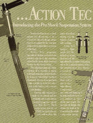 A jeśli chodzi o inne konstrukcje analogiczne do HS DeltaV/DD/Fatty/P-Phone, to pierwsza na tym polu była firma Action Tec. Amortyzator z 1991r (pierwszy Cannondale i jego pierwszy widelec Delta-V- 1992) bardzo zaawansowany technologicznie - sprężyna negatywna i specjalna sprężyna reagująca na zwiększanie się objętości oleju pod wpływem temperatury w czasie pracy amora (bolączka cartridge'y w RS). Możliwość szybkiej regulacji tłumienia (a może nawet zablokowania) w locie. Wchodził na rurę 1 1/8". Zwróćcie uwagę na jedną rzecz - mocowanie w rurze sterowej jakby na raz gwint i AHead. Ciekawe.