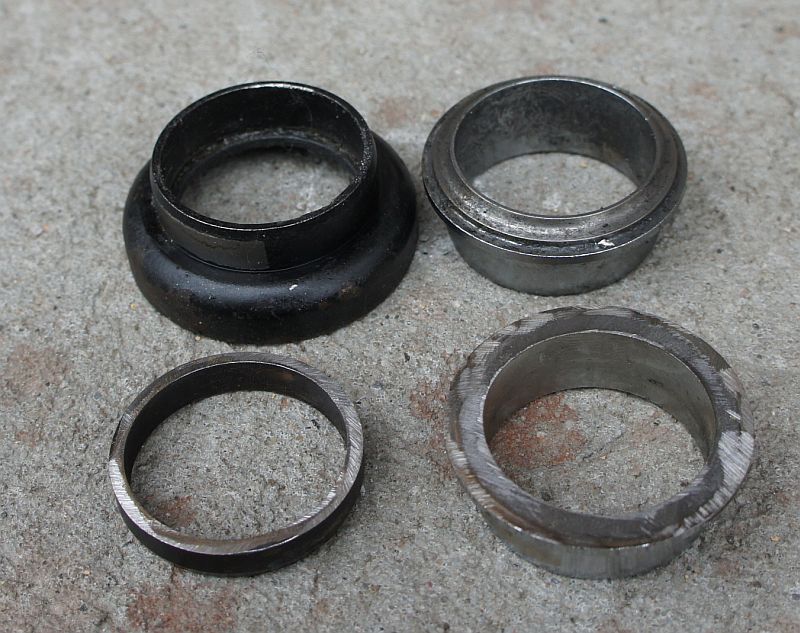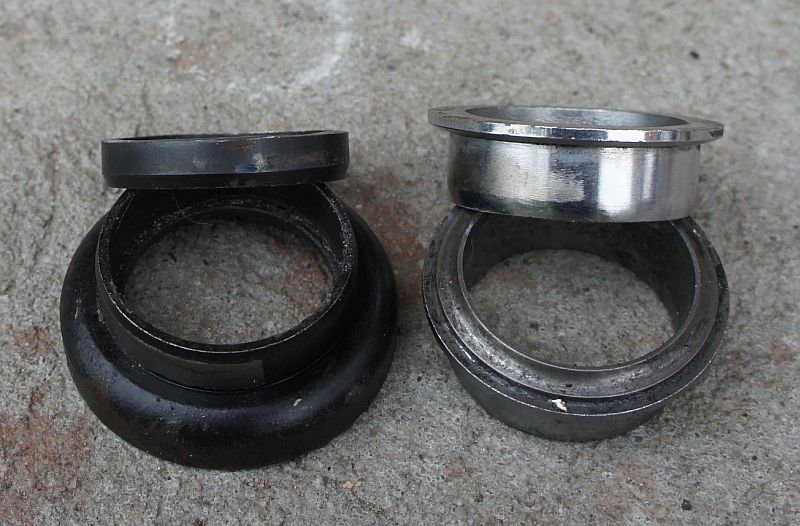 - bierzemy 2 niepotrzebne miski sterów 1 1/8" (te ktore są wciskane w ramę) - trzeba dobrać miski sterów 1 1/8" tak aby pasownie nachodziły na stery 1" Najczęściej tak spasowane są padaki 1 1/8" z grubą ścianką