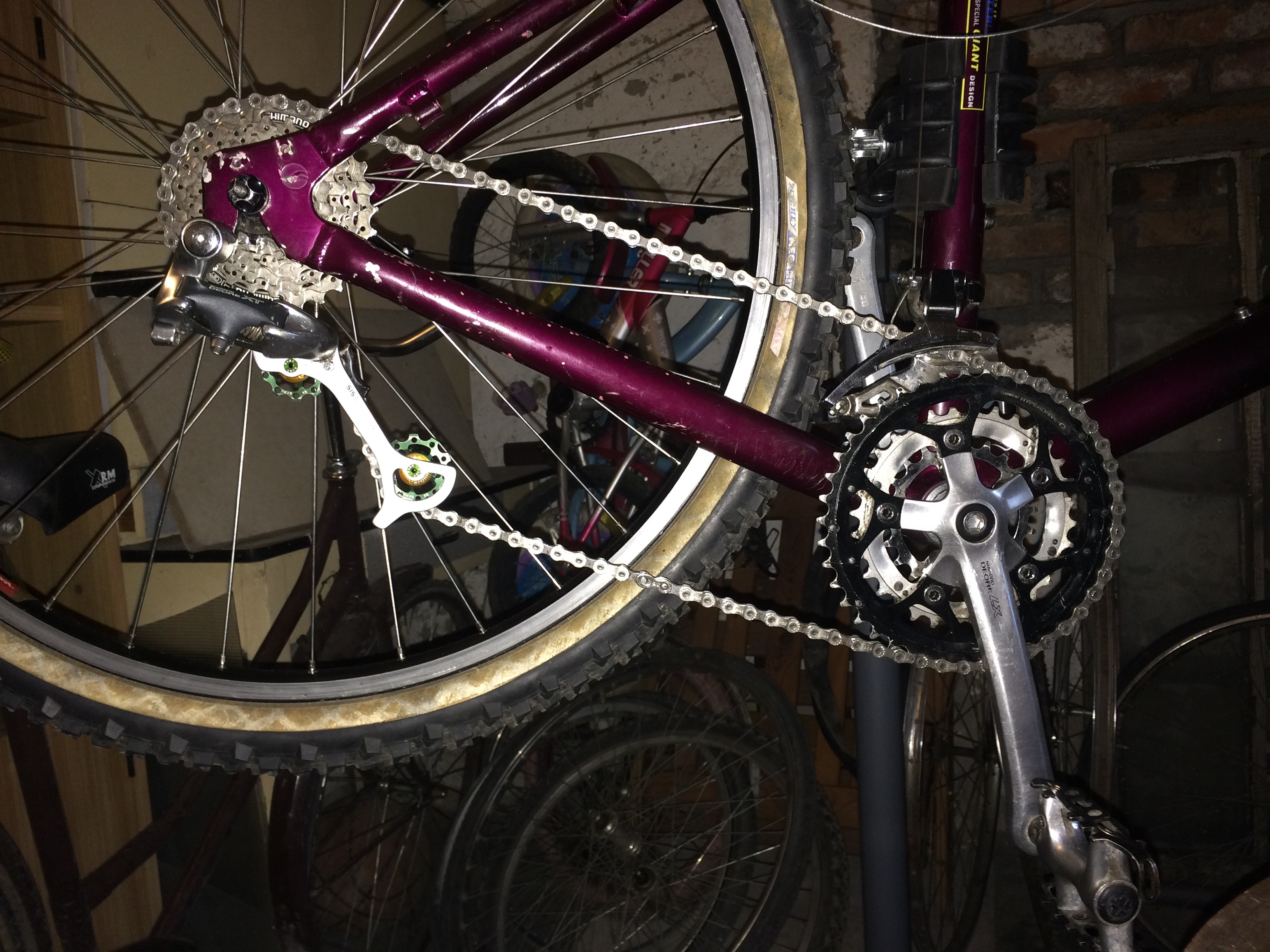 Łańcuch może mógłby być dłuższy o 2 ogniwa, niemniej takiej kombinacji przełożeń i tak się nie używa, więc nie wiem czy to konieczne.