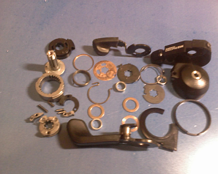 Przy okzaji oczywiscie wyśmigamy cały mechanizm manetki aby był czysty bez starego smaru.