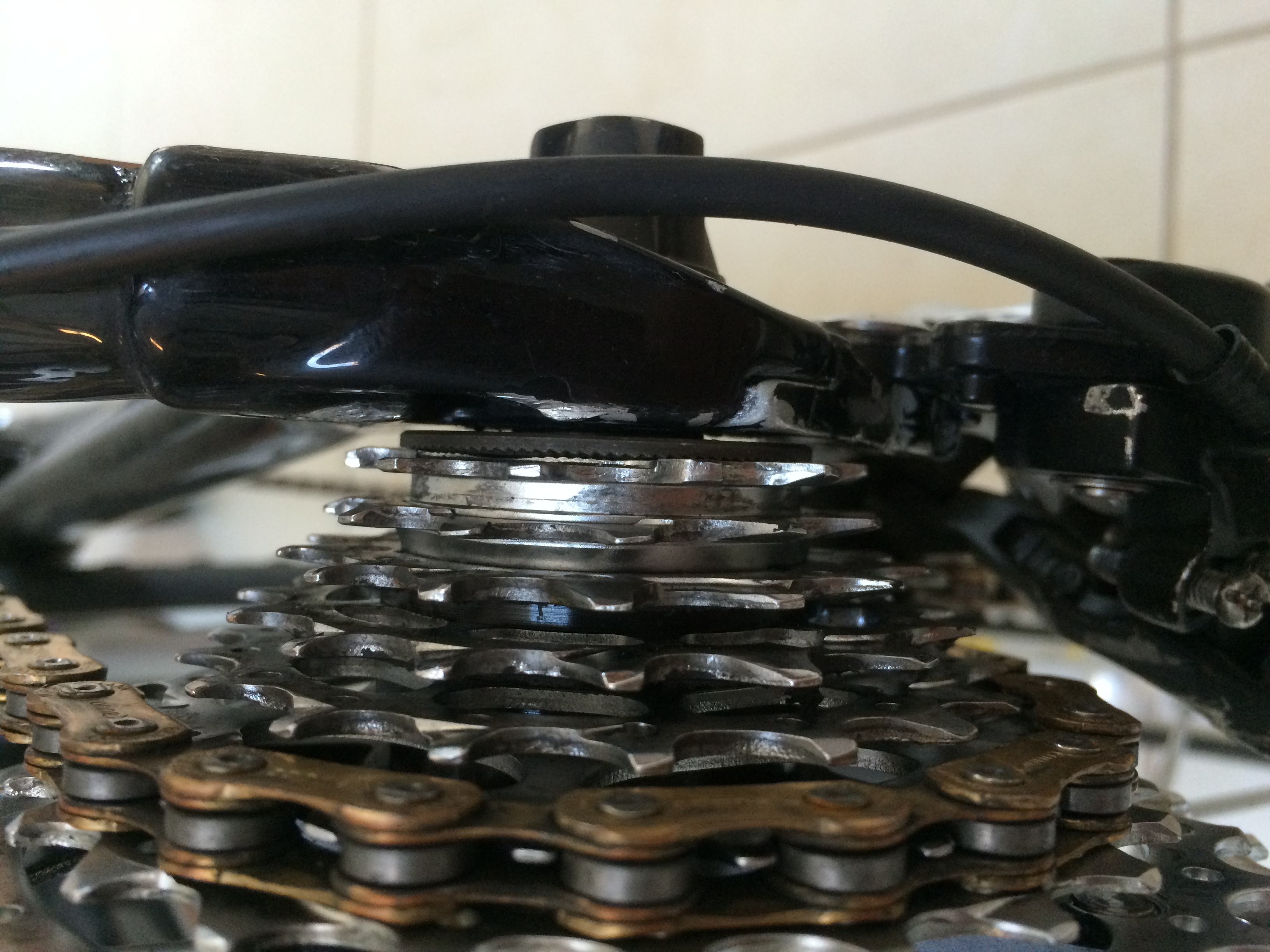 mam niestety jeden problem. przy podkładce oryginalnej (kaseta 9s sram) kaseta dosłownie blokuje się o rame!!