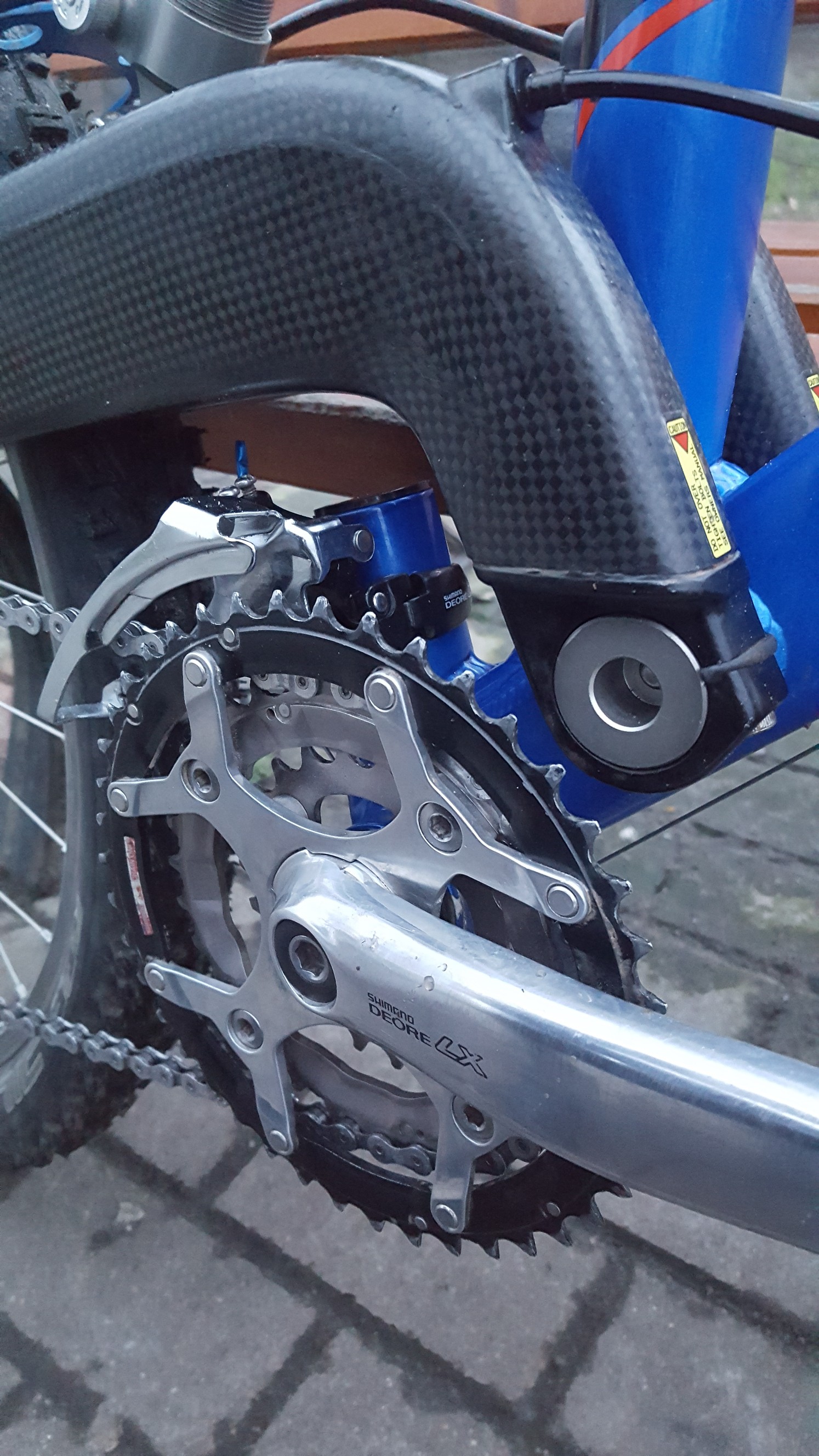 I jeden z naszych zjazdowców, niejaki Artek Fotograf, zlecił przeróbkę swojej ramy p. Kurasiowi (PPK) - damper został zamocowany bezpośrednio do wahacza bez elementu pośredniego, oczywiście wymuszało to zmianę punktu jego mocowania do wahacza