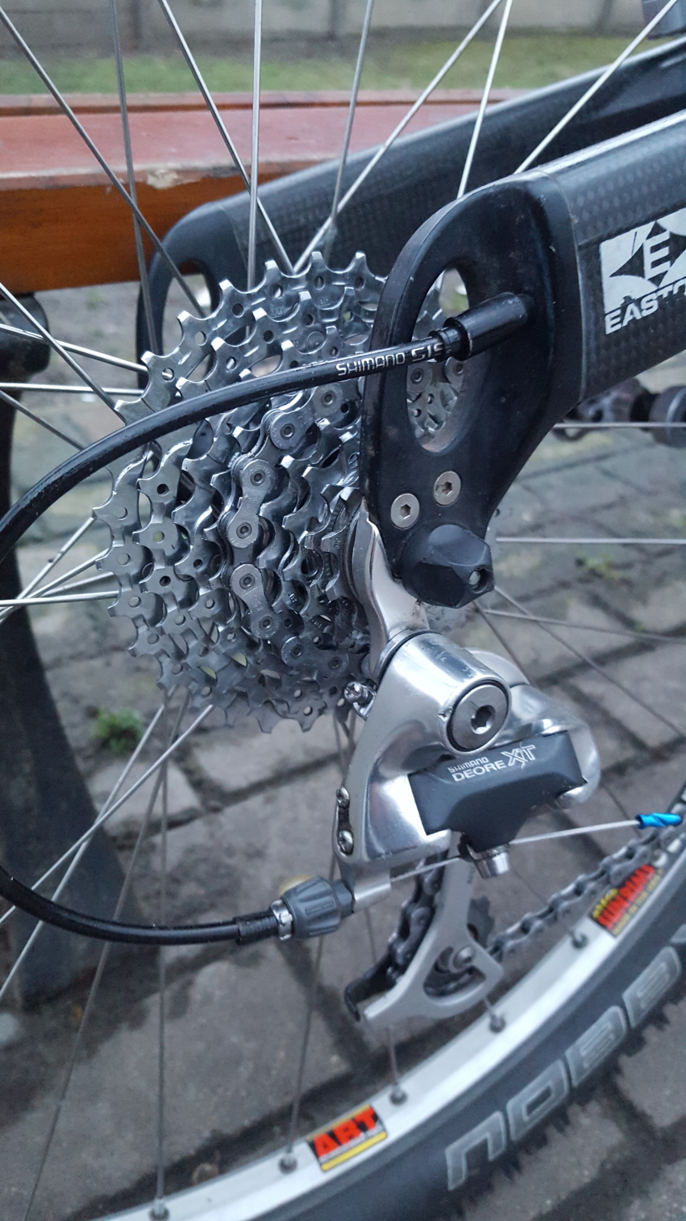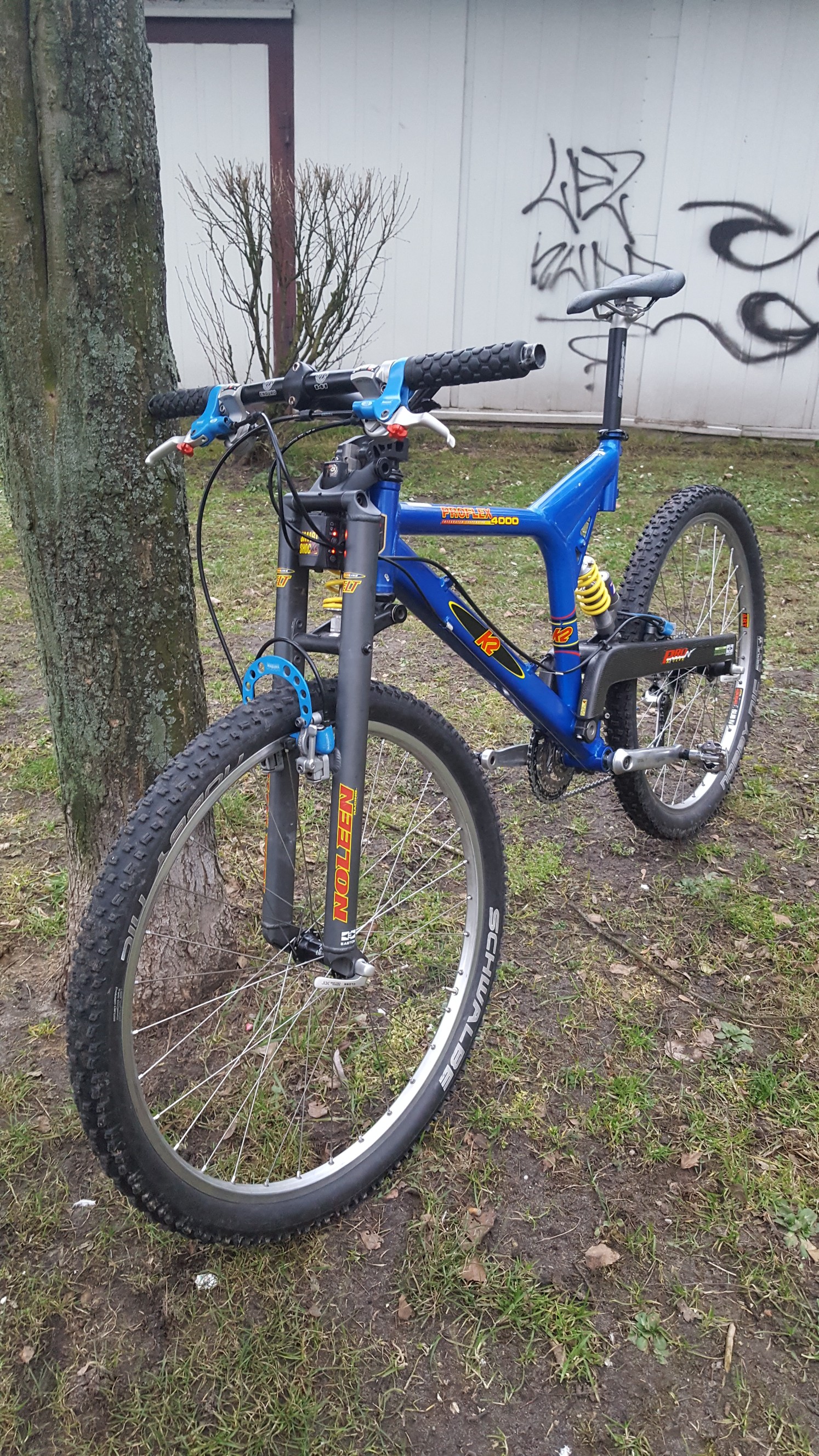 Rower dostał u mnie drugie życie. Był wizualnie w opłakanym stanie. Bród koloru brązowego pokrywał całość.Mechanicznie mocna czwórka z plusem :-) Zgodny w pełni z katalogiem oprócz hamulcy ,siodełka no i opon. Manetki xt.