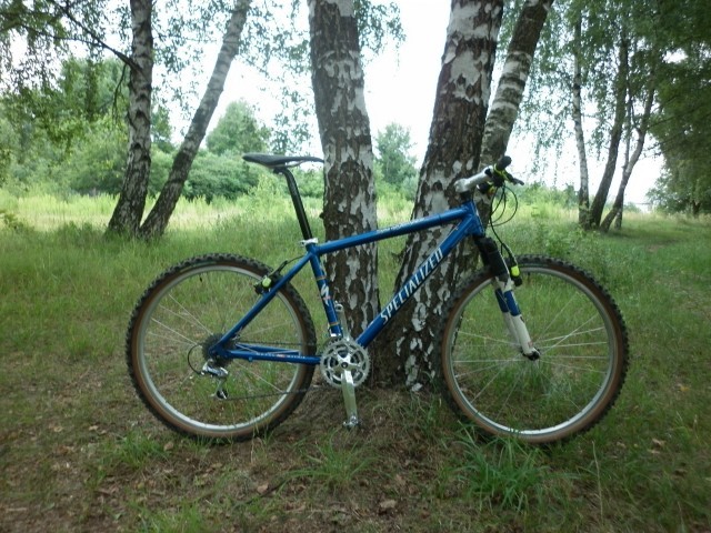 Oto mój retro rowerek, udało mi się go nabyć na wiosnę i służy mi głownie do przejażdżek po lesie i jazdy po mieście. Starałem się aby części pasowały do siebie i myślę że to się udało. Jedynie siodełko i pedały są nowsze. Rama jest Handmade in USA, tylną przerzutkę wymieniłem z XT na XTR RD-M900, sztyca Kalloy "Push", koła na czarnych piastach Shimano LX Parallax, hamulce to Magurki HS33 Raceline, oponki Michelin Wildgripper X-Sport, a reszta jest oryginalna. Amorek Judy XC, korba Specialized Son of a strongarm, kierownica Ritchey Forcelite, Stery Ritchey Logic, FD Shimano XT.