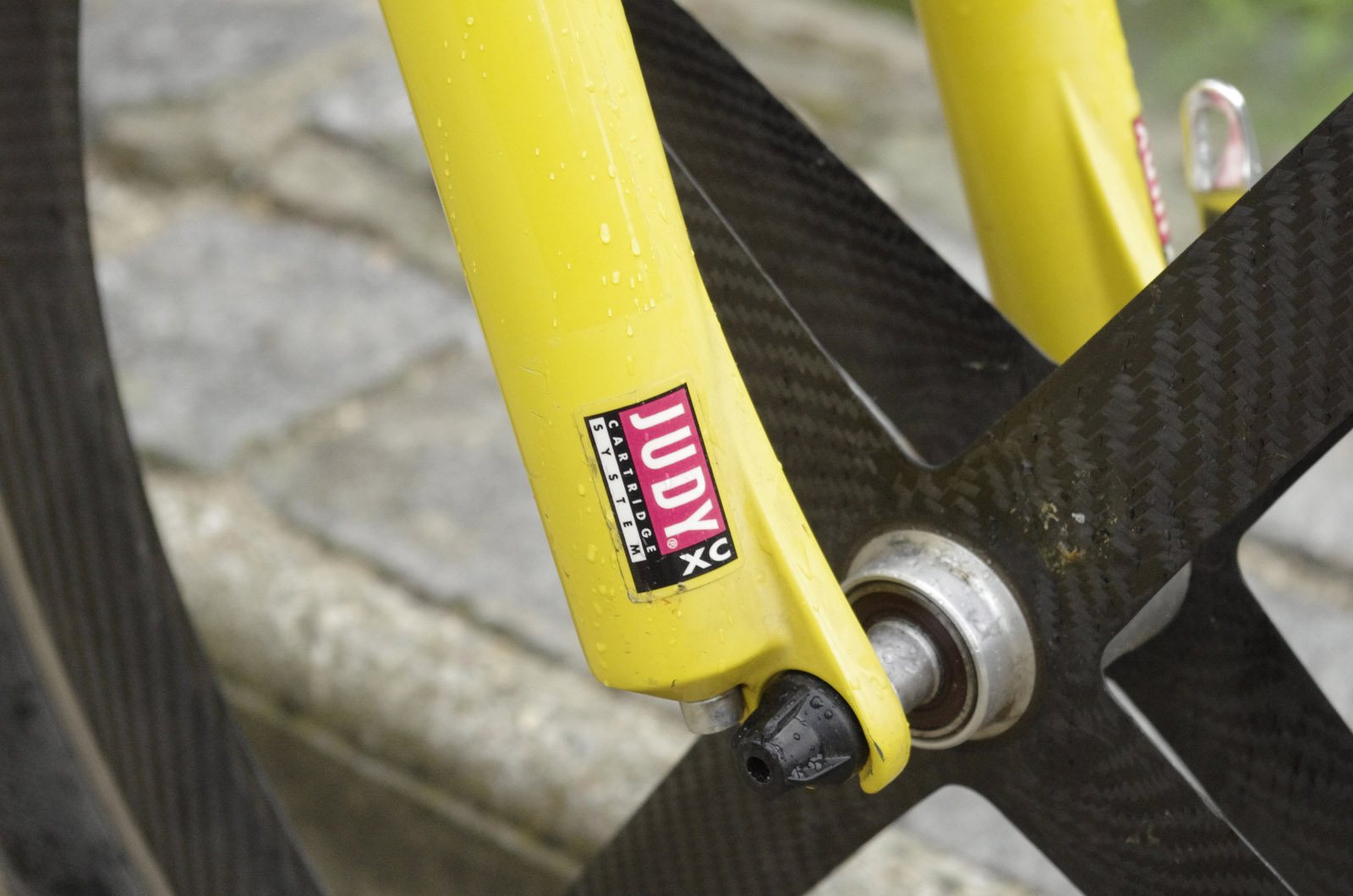 Główne kierunki ulepszeń to idąc od frontu rogi Onza początkowo myślałem o niemetalicznej czerwieni jak Magury jednak założone tymczasowo sprebrne Tranz-X'y moim zdaniem wyglądają fajnie razem z korbą XT i ostatecznie szukam srebrnych Onz :), opony koniecznie idą do zmiany (jak i dętki) i raczej będzie to zestaw Panaracer Dart/Smoke + zielone dętki także Panaracer, siodełko także trafi także w odstawkę ale tutaj nie mam ścisłego planu chociaż świetnym hołdem dla Judy byłoby z pewnością żółto-czerwone siodło San Marco z wyszywanym podpisem Julie Furtado w tamtych czasach było też wiele innych siodełek pasujących do zesatawu, brakuje też epokowych pedałów i tutaj chyba najbliżej jestem opcji żółtych TIME ATAC Carbon, poluję też m.in. na zaciski kół Spinergy lub inne ciekawe epokowe. Fajnie byłoby mieć też stery Chrisa Kinga jednak na tą chwilę Dia-Techy, które są zgodne z oryginalnym konceptem Dia-Compe z roku 1994 dają radę i robią swoją retro robotę w dobrym stopniu :)