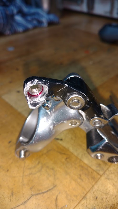 Miała ona zerwany gwint do śruby która trzyma linkę. Zrobiłem tulejkę z Mocowania manetki I-SPEC i osadziłem na kleju. Dałem też śrubę tytanową,wygląda zacnie.