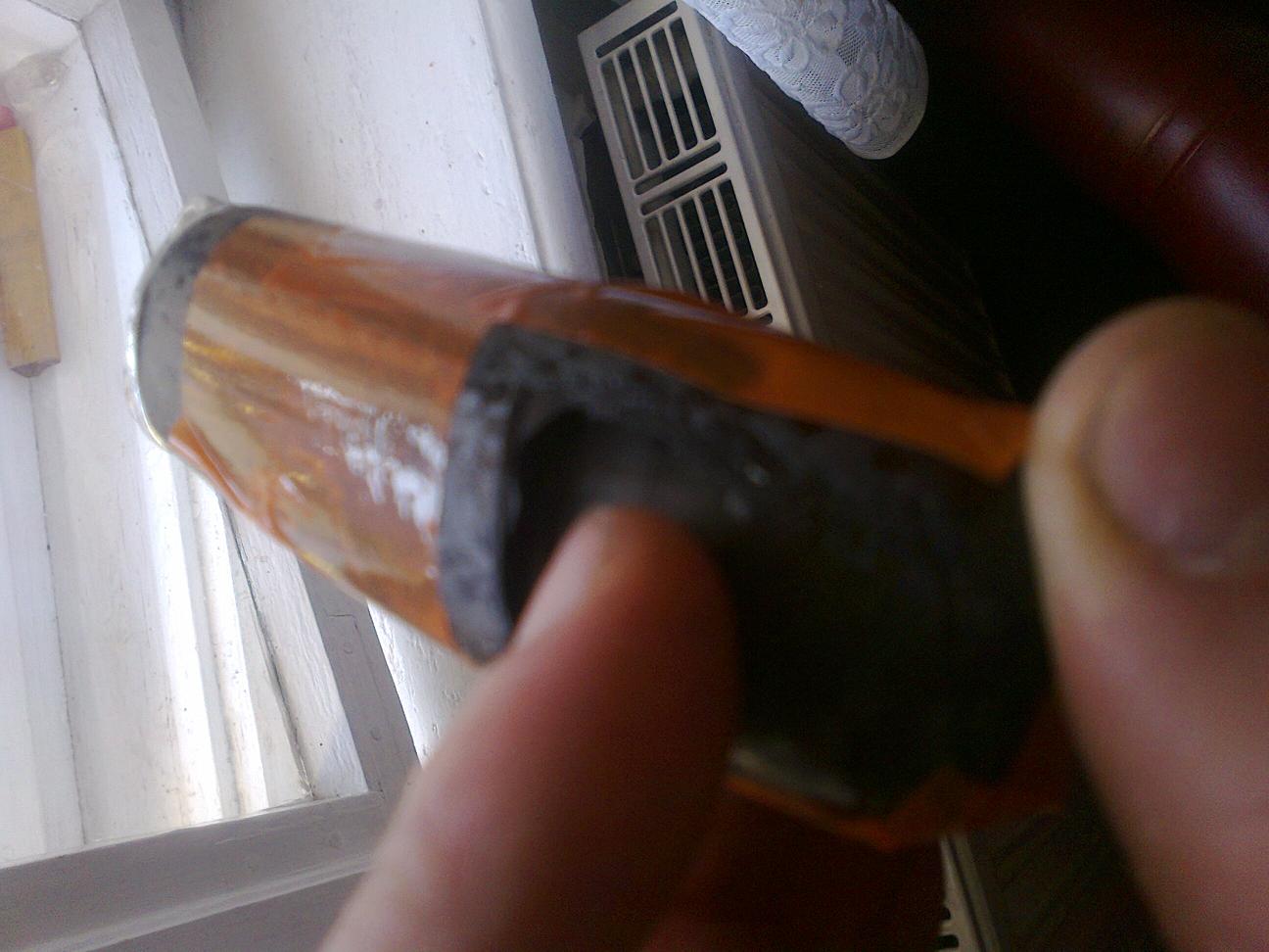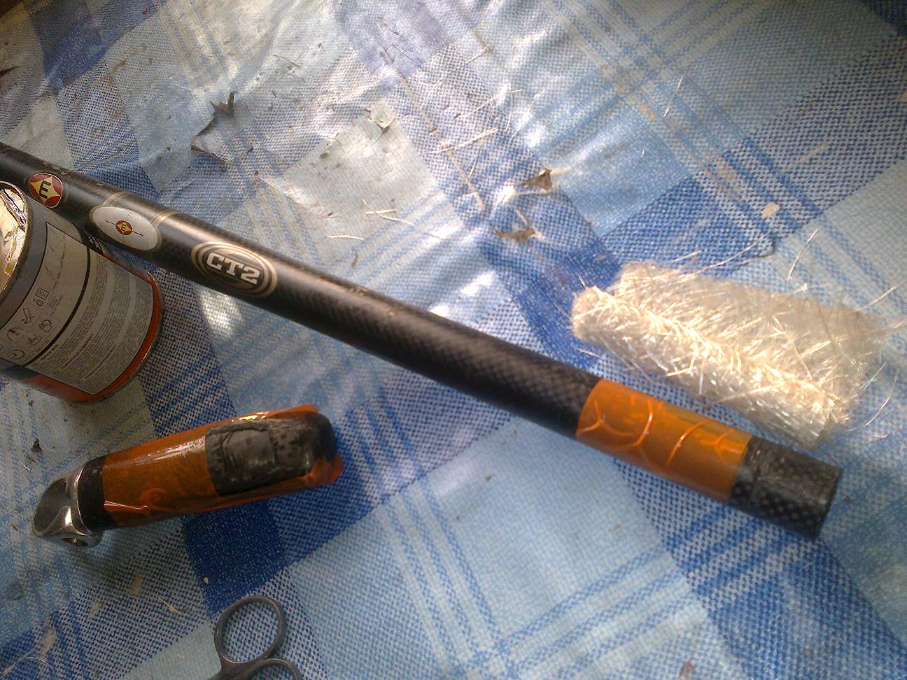 Znajdź nakrętkę na klucz 15mm. Np od piasty. W środek nakrętki wejdzie wspornik. Odkręcaj w prawo (lewy gwint). W ten sposób wyjmiesz tłumik i wspornik Dual Air - ale do do samego tłumika się nie dostaniesz. Jest nierozbieralny - zaklepany na amen.
