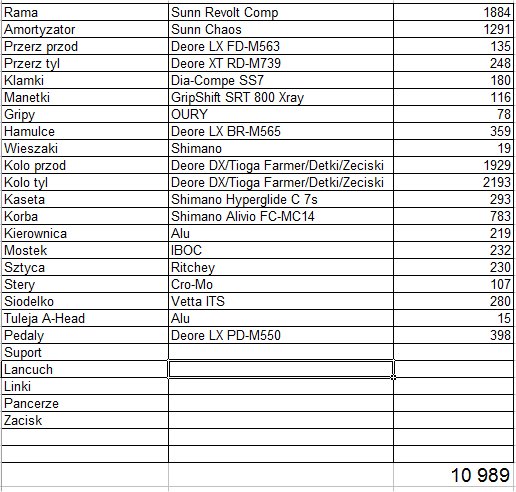 Jak widać dużo jeszcze do kupienia: mostek 1”, korba mysle Sugino, kola LX i inne drobiazgi. Ogólnie oryginalne komponenty Brute są praktycznie nie do dostania.