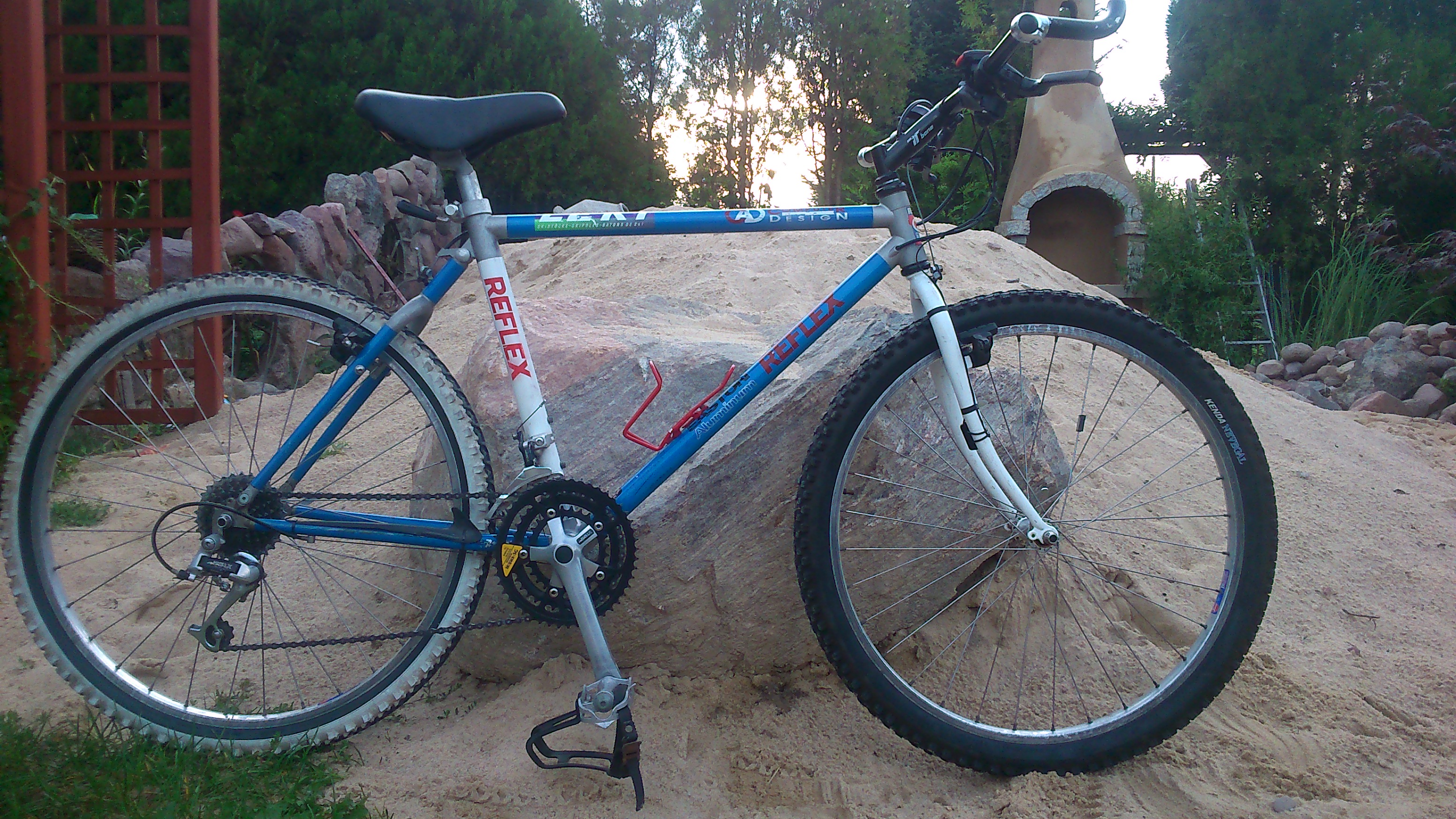 #1Kolejny rower jaki ostatnio zacząłem składać to Reflex CAD, mało spotykana firma, właściwie w googlach na polskich stronach nic o niej ma, firma ta teraz zajmuje się chyba produkowaniem kij ,,bejsbolowcyh". Rama jest nie byle jaka, ponieważ ma wpuszczane linki w ramę, wykonana z aluminium na rurkach Eastona, ciężko jest mi określić z czego są wykonane łączenia (magnes tego nie przyciąga).