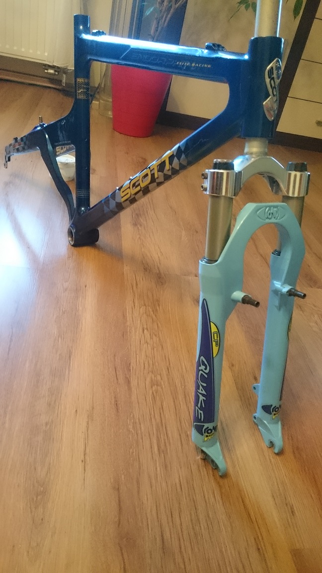 Wygląda jak nówka ten quake. Super dobry stan i naprawdę ciekawe zestawienie amortyzatora z ramą, w dodatku nie widziałem takiego połączenia wcześniej.