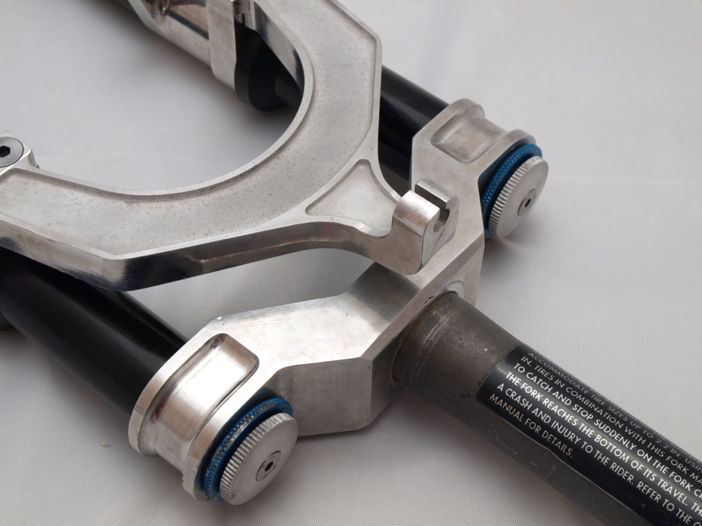 Teraz troche o widłach. Kiedy zacząłem swą przygodę z MTB w roku 1992 nie było zbyt dużego wyboru w tej kwestii, raptem kika modeli na całym świecie, ale ten amor zawsze powodował u mnie szybsze bicie serca. Kręciła mnie ta jego masywna budowa i frezowane elementy. Szczerze mówiąc to chyba nie widziałem go na żywo do sieprnia ub. roku kiedy to kupilem sobie wreszcie własny taki.
