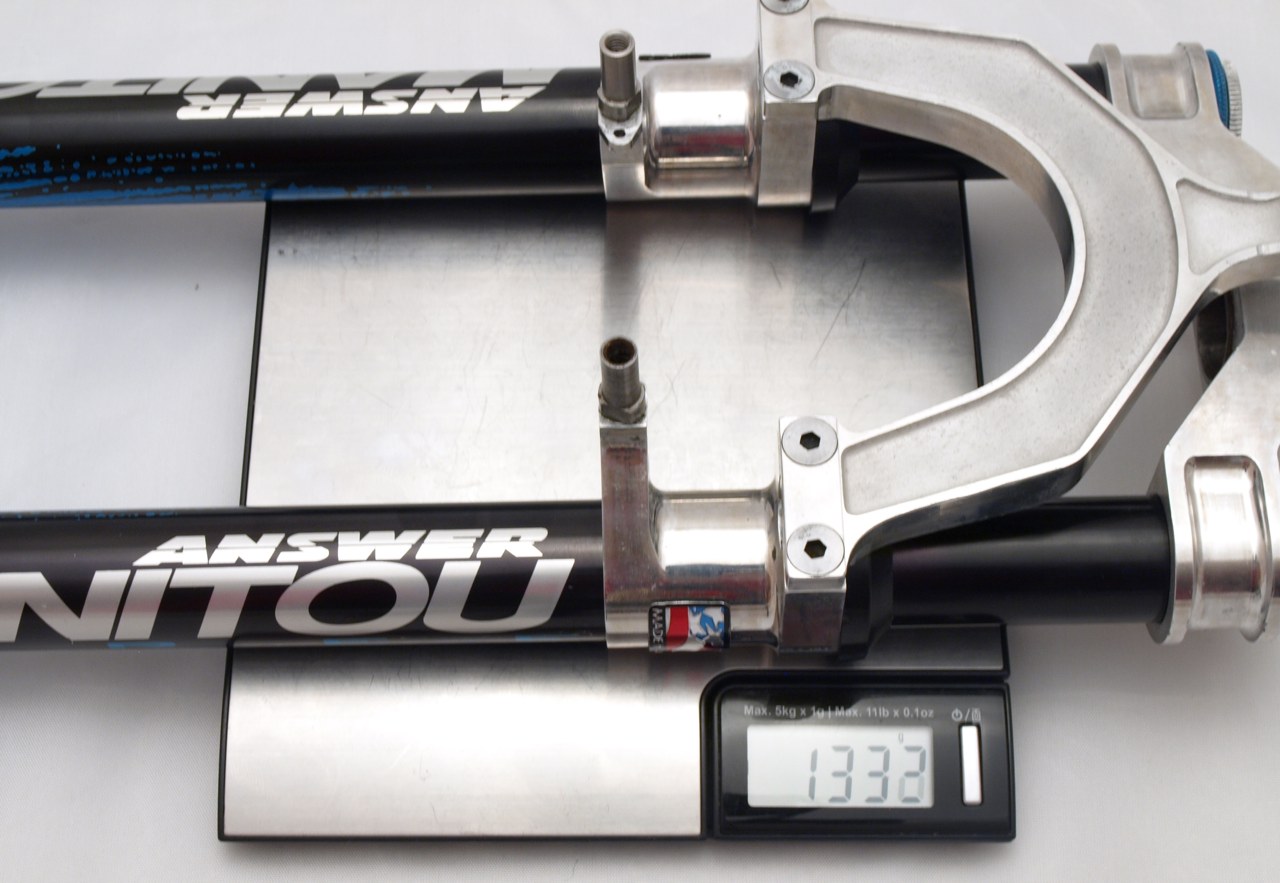 spokojnie byś mógł spiłować wieszak, idealnie by wyszło i nawet by nie było śladu po zabiegu. waga całkiem w pytkę i pewnie ze stalową rurą sterową. mnie kręciły zawsze napisy EASTON na dolnych/górnych lagach albo na rurze sterowej, to były czasy gdy różni producenci brali rury od EA.....