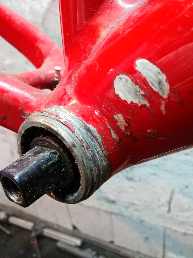 Z początku martwiłem się że jak wykręcę suport, to wyjdzie z tym kawałkiem ramy na którym jest ten szlif