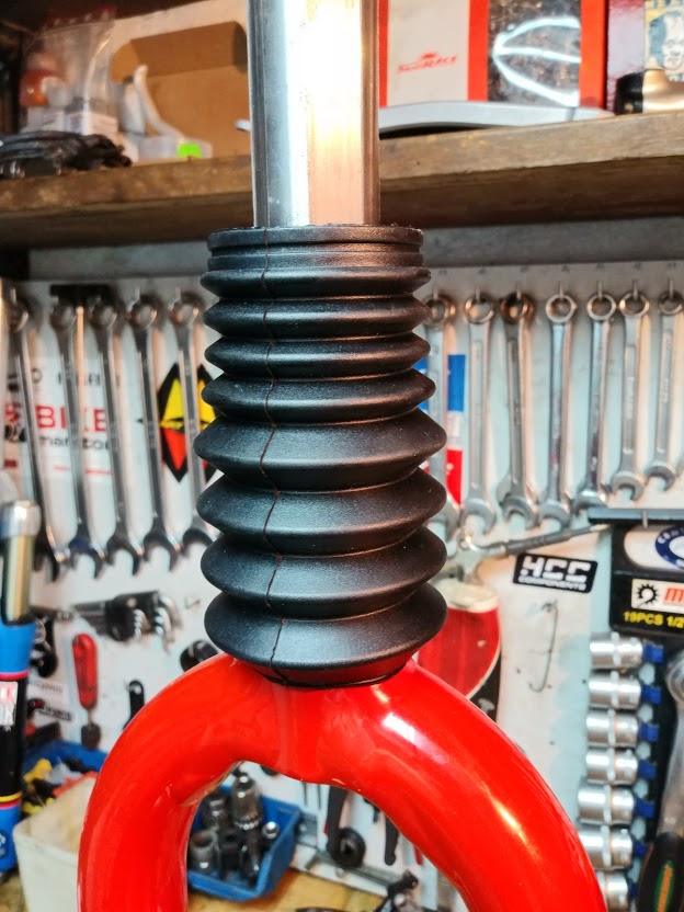 Obciąłem na pożądaną długość i to co zostało podzieliłem na 3 mniejsze kawałki,które będą służyć za uszczelnienie dołu widelca