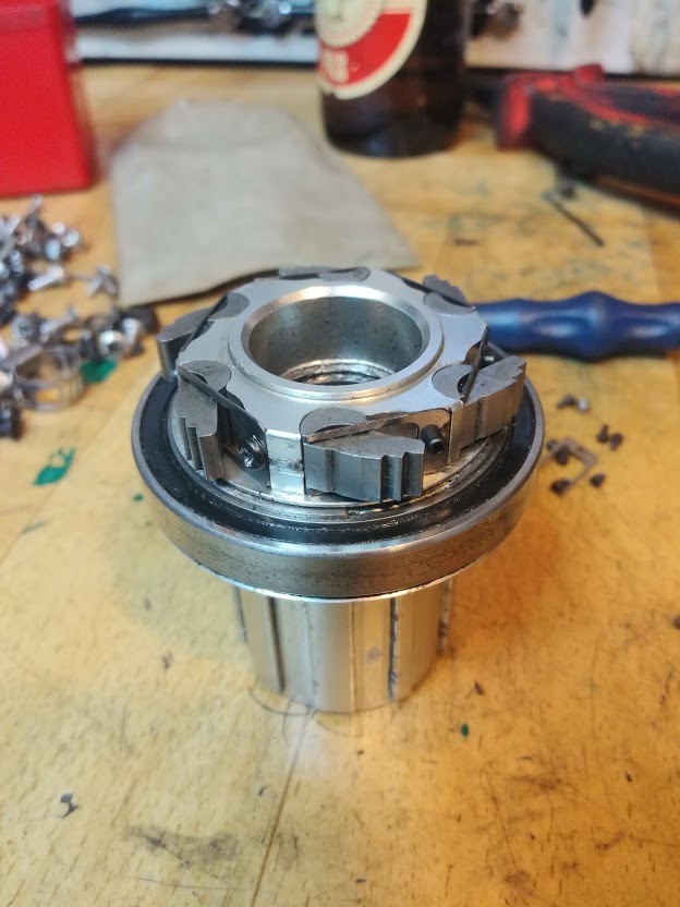 Posiada on 6 zapadek z czego każda z nich ma jeszcze dodatkowe nacięcia.Wszystkie zapadki mają osobne naprężenia w postaci blaszek które są mocowane śrubkami, tak małymi że potrzeba do nich specjalnego imbusa. No i tu właśnie jedna śruba miała urwany łepek a gwint został w bębenku. Cóż udało się to zrobić w moim warsztacie :-D