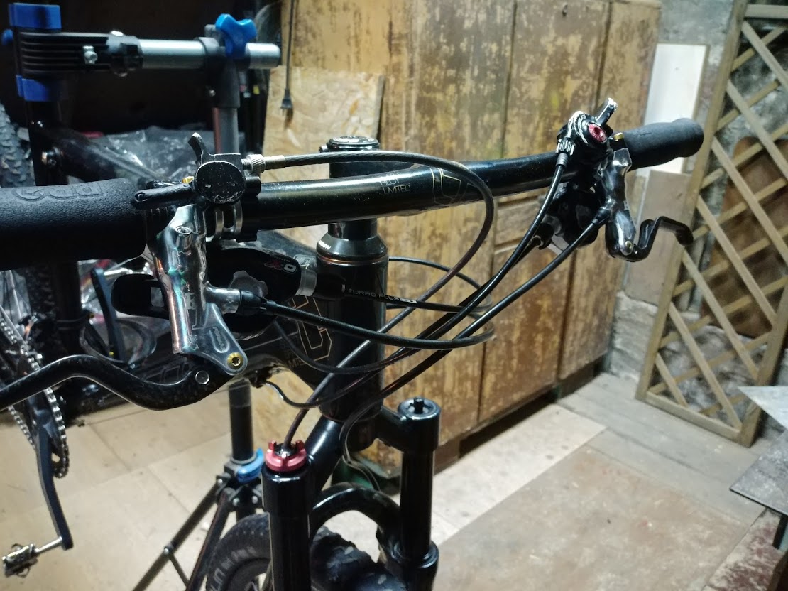 Hamulce zrobione, przelałem je na nowo i teraz działają. W sumie rower skończony, pozostał problem adapterów są za wysokie, nawet orginalny z formuli nie pasuje. Trzeba oba sfrezować z 2 mm żeby klocek objął całą tarczę...