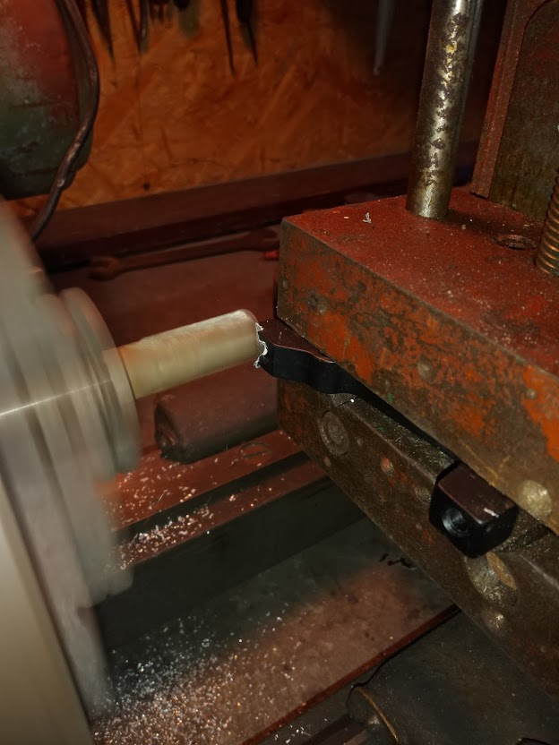 Tokarka poszła w ruch. Założyłem przystawkę i nóż do frezowania.Mimo że z adaptera zdjąłem 2mm z wysokości, dalej mi to nie pasuje a same hamulce doprowadzają mnie do szewskiej pasji.... :evil: