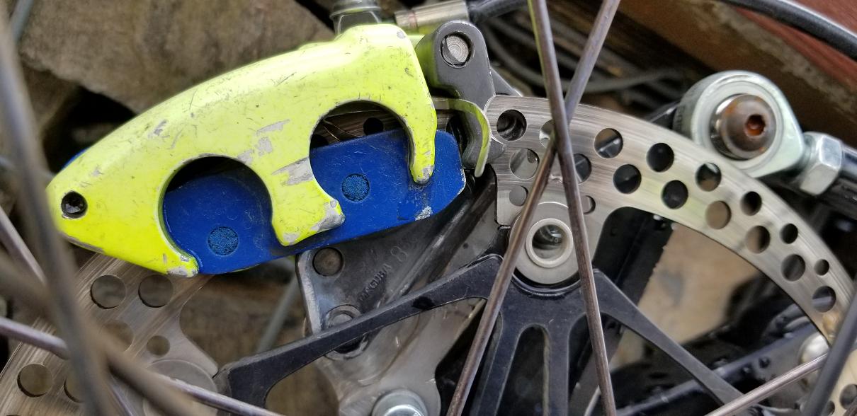 Jedyne co wczoraj zaczalem robic to hamulce, wszak nie owy dekielek, a samo dzialanie, pojawil sie luz na tylnym kole, ale to pewnie niedokrecienie przy skladaniu po przyjezdzie, no ale to ocieranie klockow o tarcze od lat spedza mi sen z powiek. Probowalem juz chyba wszystkiego i zawsze po nie dlugiej chwili wciaz ocieral. Konstrukcja jak wiemy jest klopotliwa ze wgledu na plywajacy zacisk, co narzuca bezwzgledna higiene elementow ruchomych, tylko jak ?! Prowadnice musza byc tluste, lapia najmniejsze drobinki kurzu, a to powoduje zacieranie, to samo trzpien klockow ktory wypolerowany, momet koroduje 😡