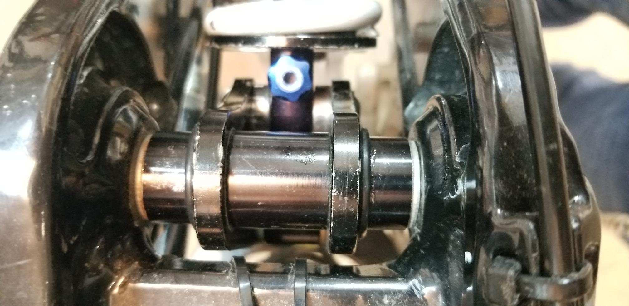 Oprocz tego zeby wszystko pasowalo, musialem tuleje dystansowe podszlifowac, pod tuleje slizgowa z kolnierzem byly dobre, traz troche za krotkie, dwie podkladki, to brakuje 1mm zeby weszly, wiec podszlifowalem dystanse, dolozylem podkladki i zabezpieczylem oringami zeby w nasmarowane lozyska brud sie nie dostawal. :mrgreen:
