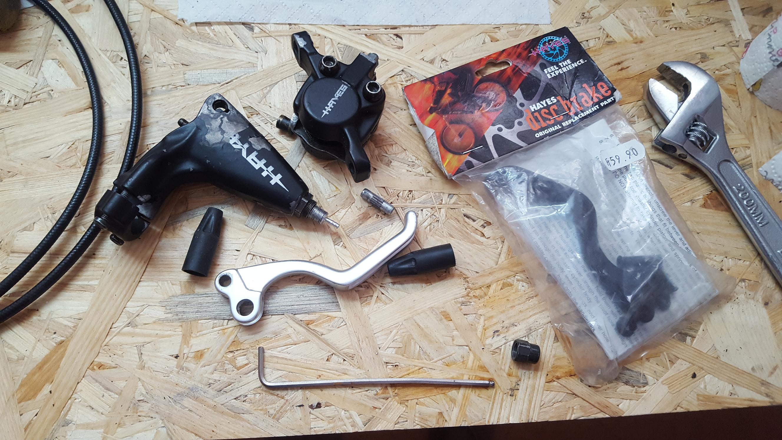 Ostatnia rzecz jaka zrobilem jakies dwa tygodnie temu to wymiana hamulca, niestety Hayes polegl z racji wieku, rozsypal sie kondom w klamce, reanimacja chociaz mozliwa stala sie nie oplacalna, wiec po dosyc dlugich poszukiwaniach wybor padl na cztero tloczkowe XT M755 ktore uwielbiam, mimo ze sa nie dotarte