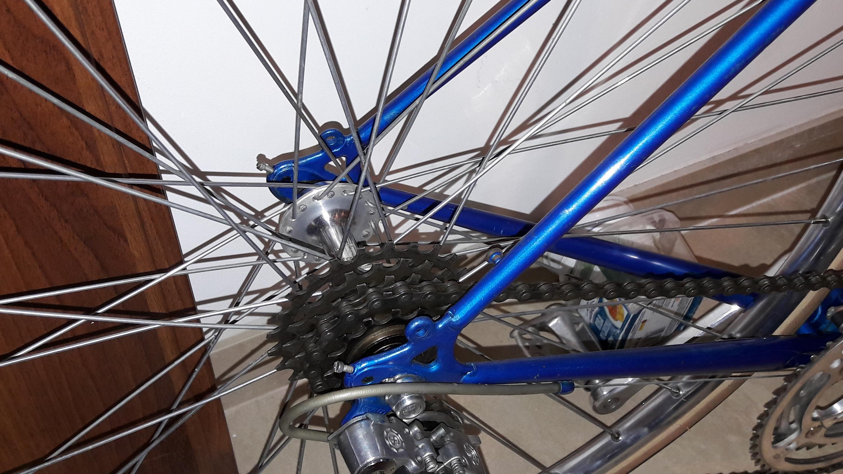 Tutaj jeszcze hamulce Mafac, Przerzutki Peugeot - Simplex, Korby Stronglight 104, koła chyba zmienione, choć obręcze pasują , piasty Maillard z nowszą datą - Mocowane na śruby a nie na zaciski.