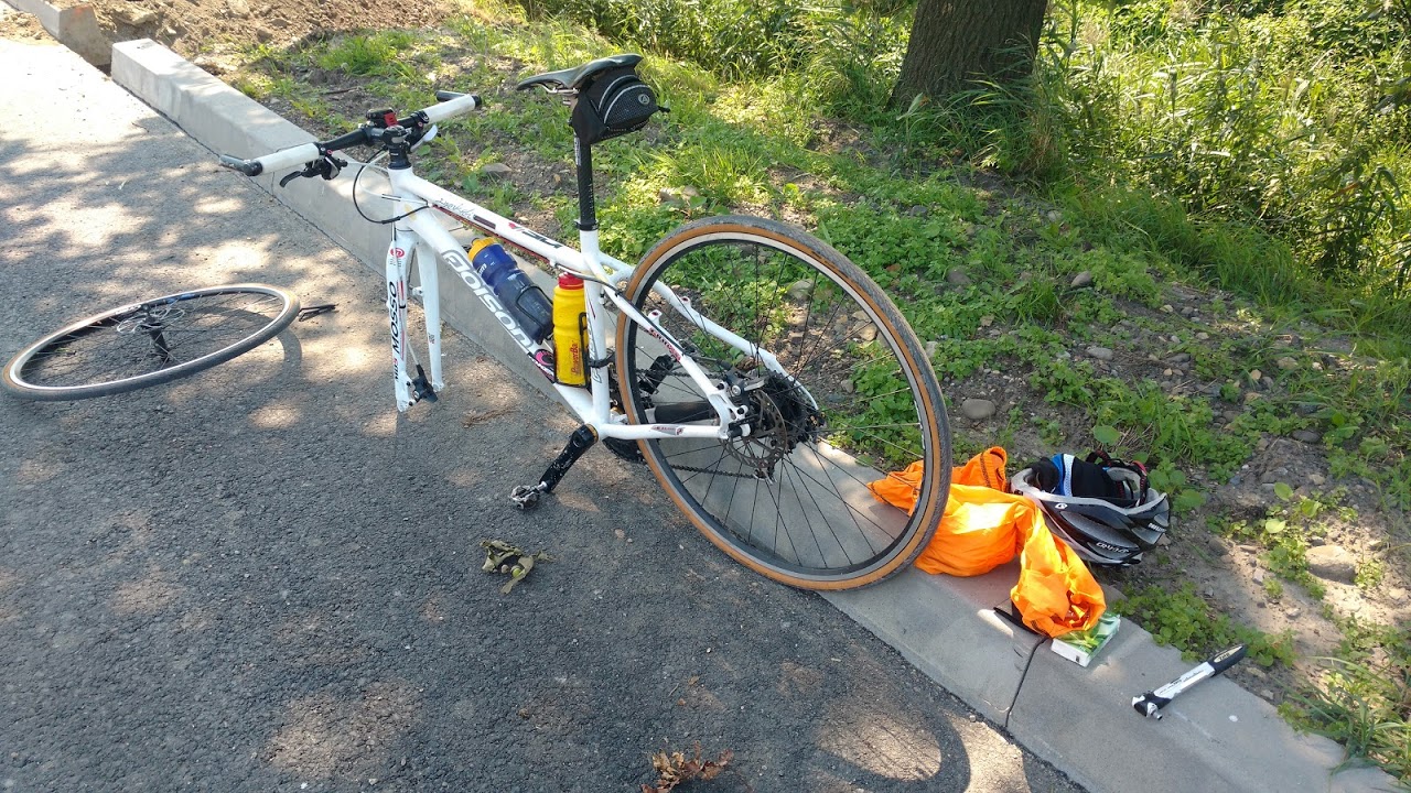 Na trasie oczywiście nie obyło się bez przebitej dętki, co ciekawe puściła na szwie