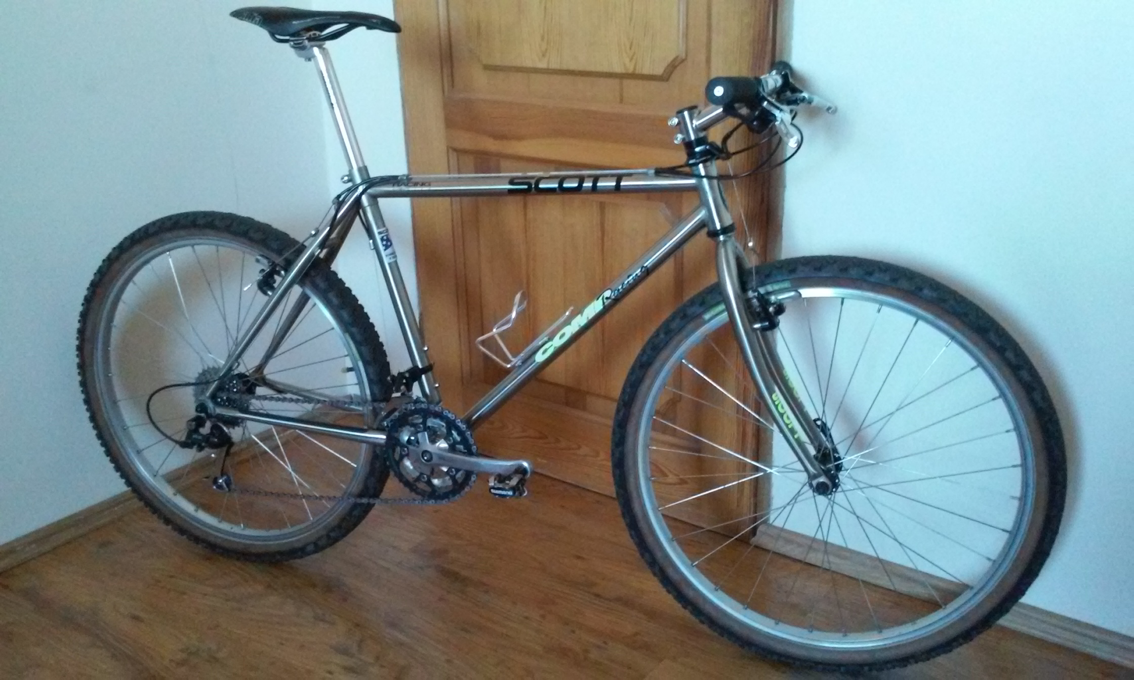 Witam. Wrzucam Scotta którego niedawno poskładałem. Rocznik 94. Fajna lekka rama z oryginalnym widelcem. Osprzęt czarny lx. W planach wymiana opon bo tylna się kończy, poza tym nawet w lekkim błocie nie dają rady. Chyba zmienię też kasetę na 11-26 będzie lepsze stopniowanie.