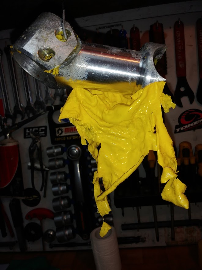 Dzisiaj w ramach luzu, bo za oknem leje od rana, postanowiłem pogrzebać przy hamulcach. Mam drugie klamki na zapas i wziąłem się za polerowanie cylinderka. Papier wodny mi się skończył ale mam pastę polerską. Na wiertarkę założyłem filc i kilkakrotnie polerowałem środek. Jest dużo lepiej bo z początku tłoczek blokował się w połowie długości. Sam tłoczek też przeleciałem pastą. Wszystko wyczyściłem i jest gitez. Nałożyłem troszeczkę smaru ceramicznego i chodzi jak trzeba. Zamieniłem cylindry w klamce i odpowietrzyłem. Działa ale okazało się że jeden z tłoczków w zacisku też nie chce wracać do końca. Wyciągnąłem go ile się da, wyczyściłem i też leciutko posmarowałem smarem ceramicznym. Na razie działa, ale jeśli nadal się będzie w późniejszym czasie blokował to dam inne zaciski, gdzieś mi leżą :)