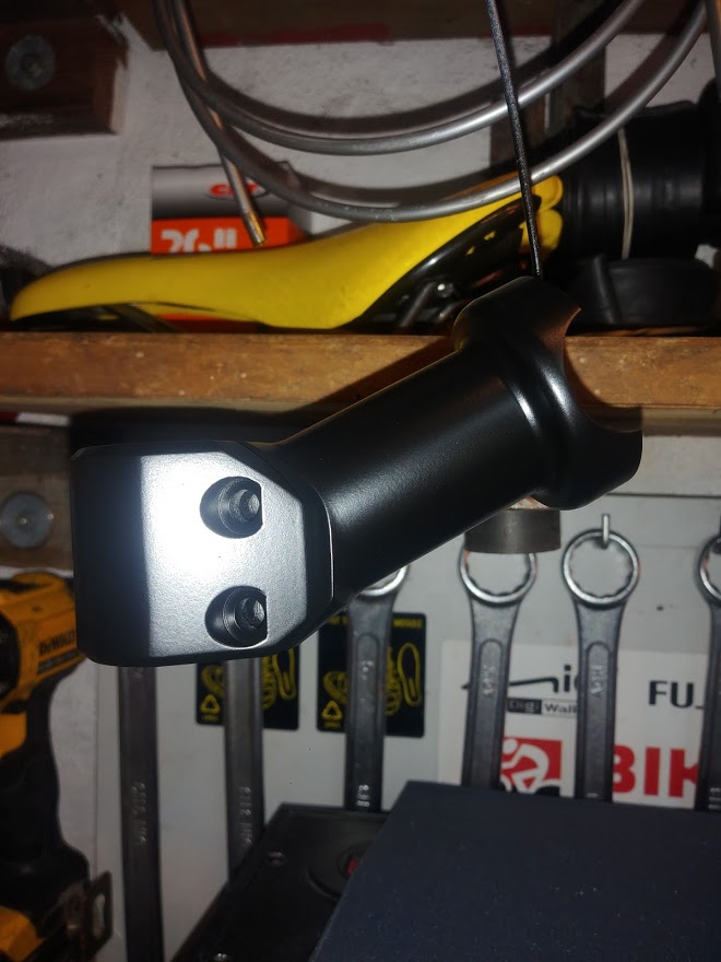 Monika zrobiła kilka przejazdów i stwierdziła że mostek jak dla niej jest za niski. No to musiałem coś z tym zrobić. Z pomocą przyszedł mostek ROOX od Fockera ale był w opłakanym stanie. Postanowiłem mu dać drugie życie... W ruch poszedł Troton, papier ścierny, Podkład dwa razy, czarny mat dwa razy, naklejki( dzięki Done) i na końcu dwa razy bezbarwny. Wyszło ok choć powłoka nie ma takiej trwałości jak bym oczekiwał to mostek spełnia oczekiwania. Dziękuję również za pomoc Jacques_de_Molay w naklejkach na ramę, na razie nie mam czasu iść do poligrafii ale na pewno to zrobię :)