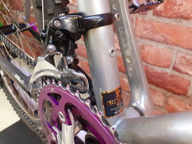 . Dawno nie cieszyłem się tak z zakupionego sprzętu. Stan roweru w sumie dobry ale, brakuje znaczka na główkę ramy, jedna z ważnych naklejek na pod siodłowej jest zdarta do połowy, osprzęt Deore LX, fajny, średni wózek tylnej przerzutki, taki chromowany :). Widelec STRUTS z ori korkami od góry. Rower nie grzeszy niską wagą ale za to jest wygodny. W wolnej :) chwili rozbiorę gada i poddam przeglądowi, mam zamiar w końcu jakiś kącik warsztatowy w garażu uruchomić bo gdzieś warto, w domu zawsze lepiej popracować przy retro, zawsze to bliżej i szybciej kawę czy kanapkę zrobić ":)
