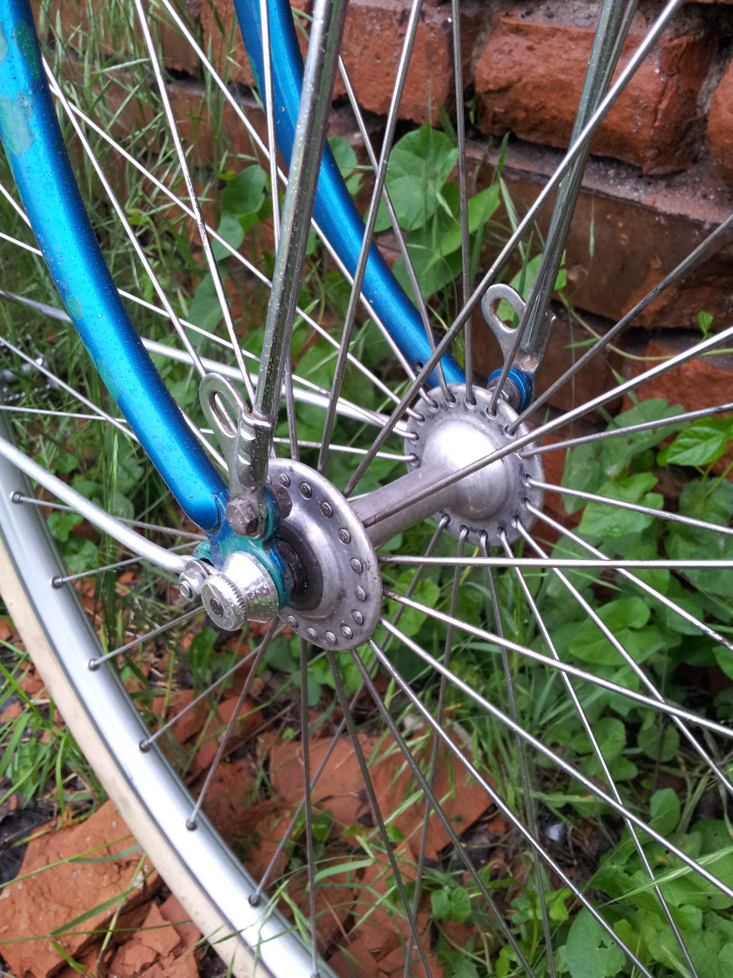 blotniki sa skrecane z bagaznikami - to jest komplet , oryginalnie z tego rowerka, niestety calosc stalowa ;( ale to juz tez sa czasy po kryzysie paliwowym, francuski przemysl rowerwy zaczyna sie staczac od polowy lat 70tych...