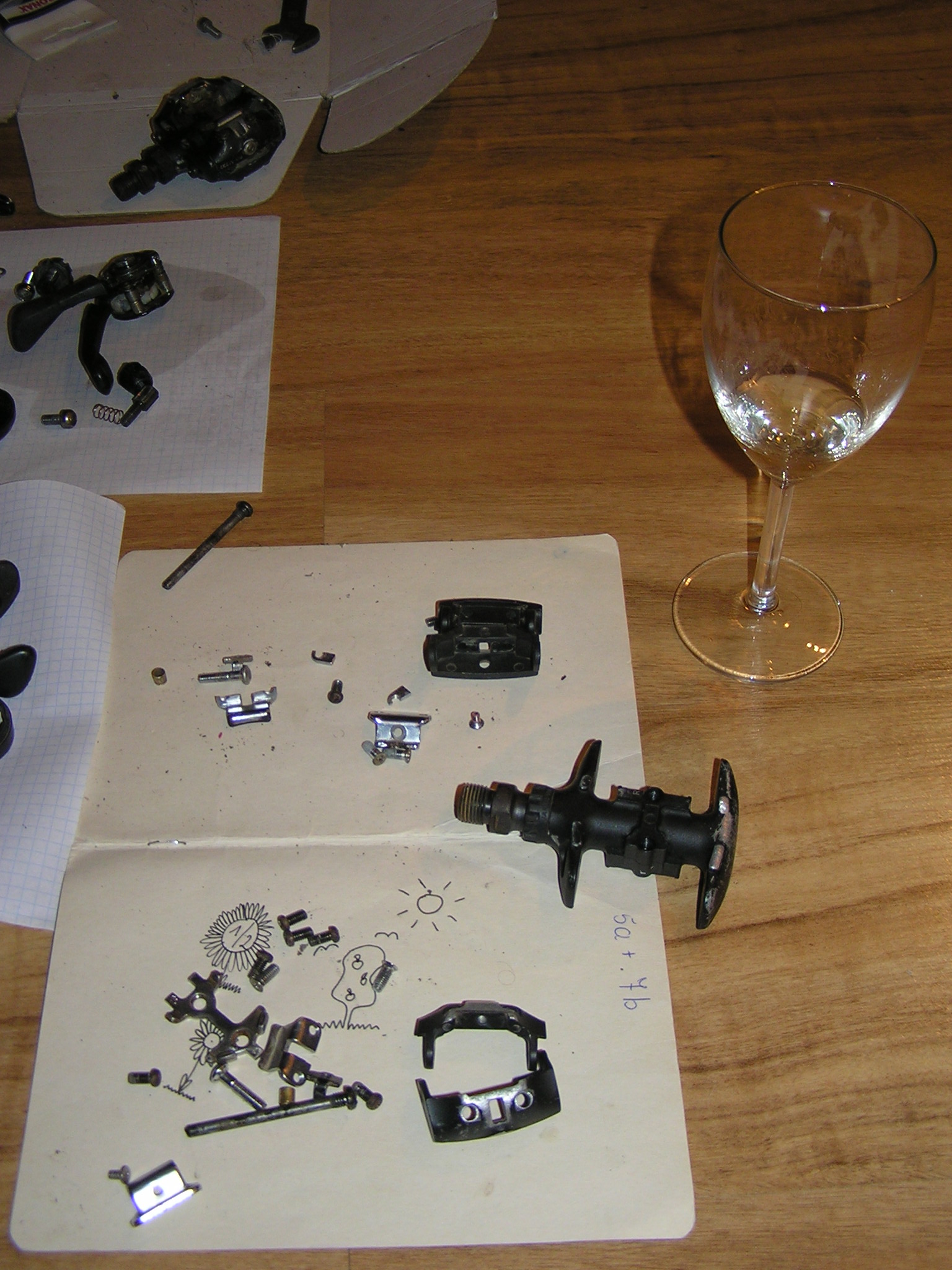 Baaaardzo powoli, ale idzie do przodu. Spd i klamkomanetki w częściach, większość wyczyszczona, ale dosyć mozolna robota bo kosztem niskiej ceny osprzętu jest stracony czas na czyszczenie. Jak przyjdą pocztą śrubki to będę składał w całość ;)
