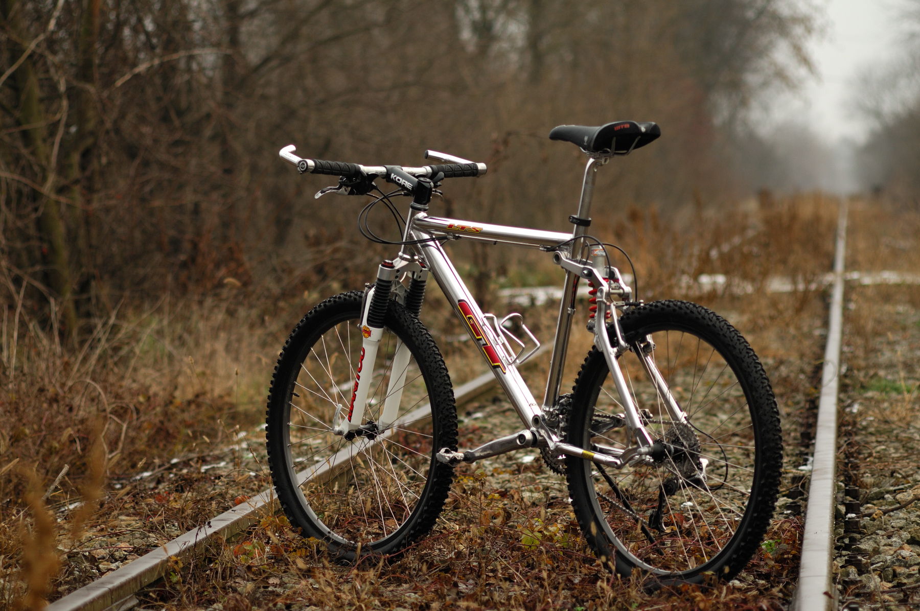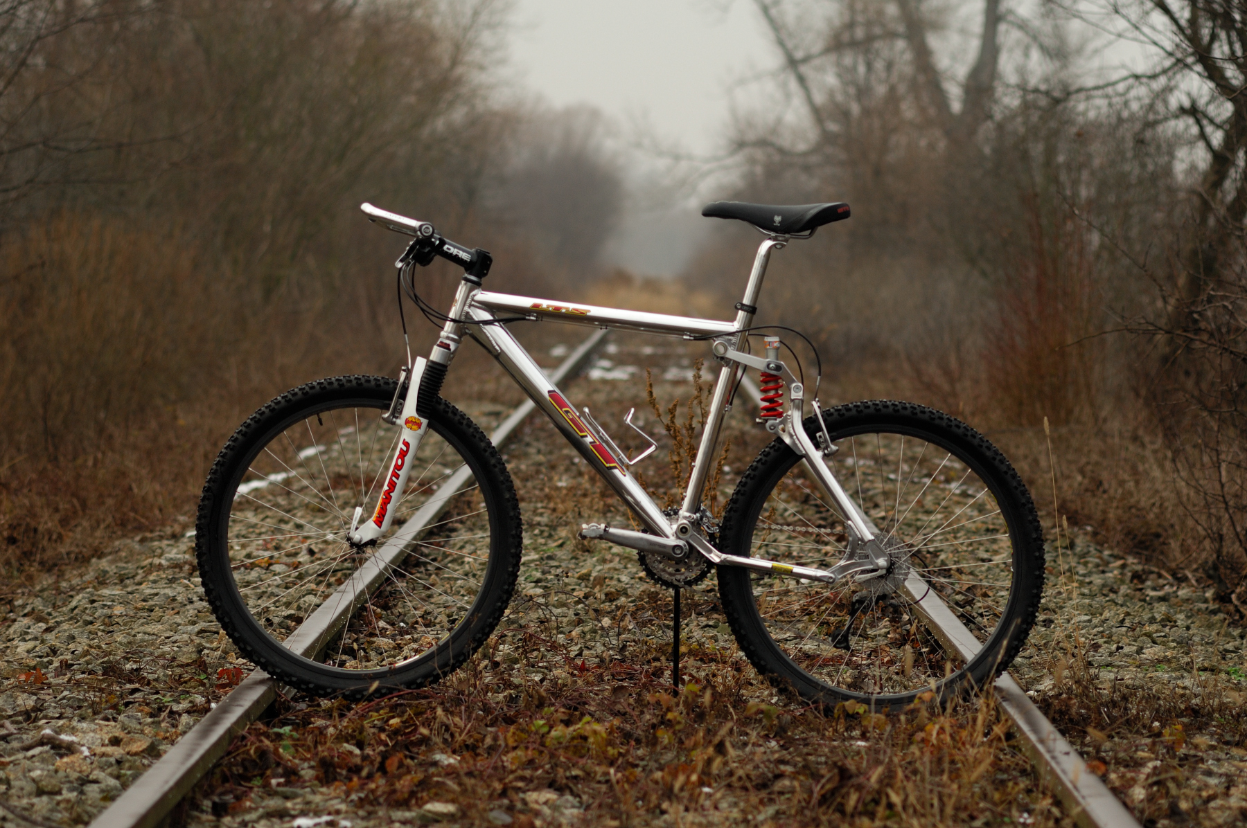Mnie to się kojarzyło z oponkami z skinwalem albo bok ciemno czerwony i amor RS JUDY czerwony, choć jak miałem rower na tej ramie , to jeździłem z 2 półkowym Manitou pomarańczowym