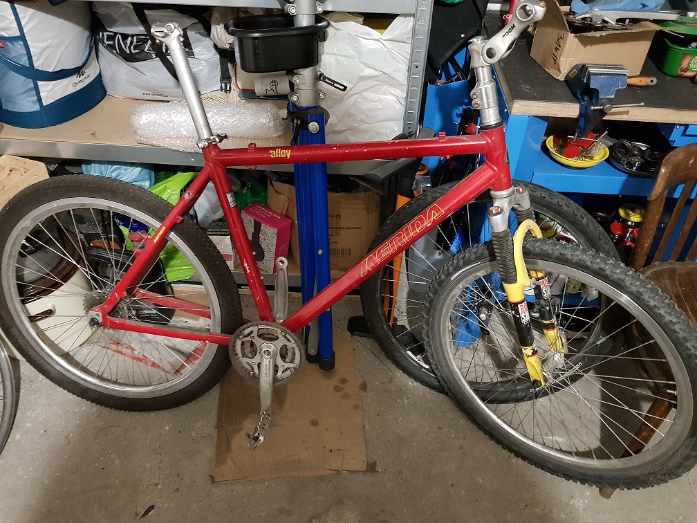 Wiem, że wersja Merida Matts Race SX w katalogu z 97 miała montowane hamulce Magura. Malowanie jest inne więc obstawiam jakiś 96 może nawet 98 rok.
